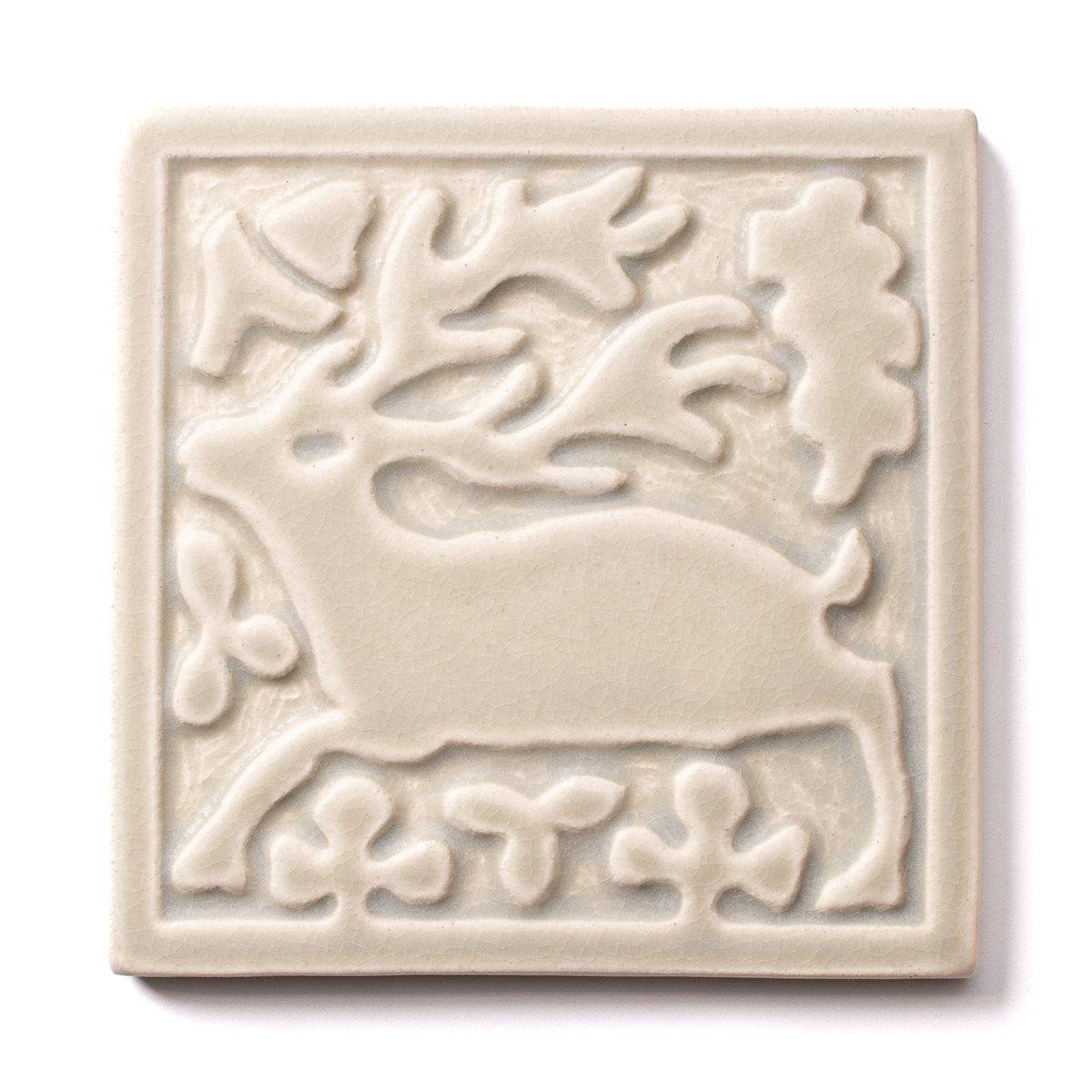 Inspired by Byland Abbey tile and medieval bestiaries, this series was hand-sculpted by Nawal Motawi at the Tileworks when the Tileworks was still just a garage. Heraldic creatures and ornamental motifs bring storybook gravitas to modern rooms. Tiles can face left or right for balance in layout. They are available in any glaze color.